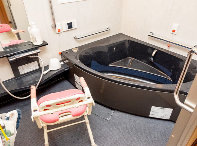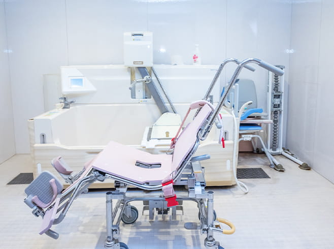 - 浴槽をまたぐのが難しい方も機械浴にて浴槽に入ることができます。